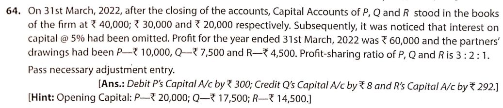 Solution of Question Number 64 of Accounting for Partnership Firms – Fundamentals TS Grewal CBSE 2022-23 Edition