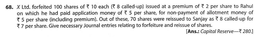 Solution of Q 68 Accounting for Share Capital TS Grewal 2022-23 [CBSE]