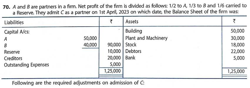 Solution of Question Number 70 Admission of Partner TS Grewal CBSE 2023-24 Edition