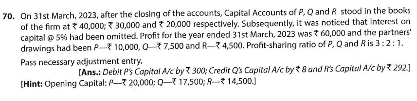Solution of Question Number 70 of Accounting for Partnership Firms – Fundamentals TS Grewal CBSE 2023-24 Edition