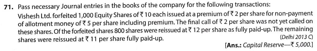 Solution of Question Number 71 Accounting for Share Capital TS Grewal CBSE 2022-23 Edition