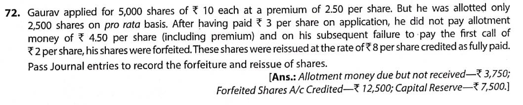 Solution of Question Number 72 Accounting for Share Capital TS Grewal CBSE 2022-23 Edition