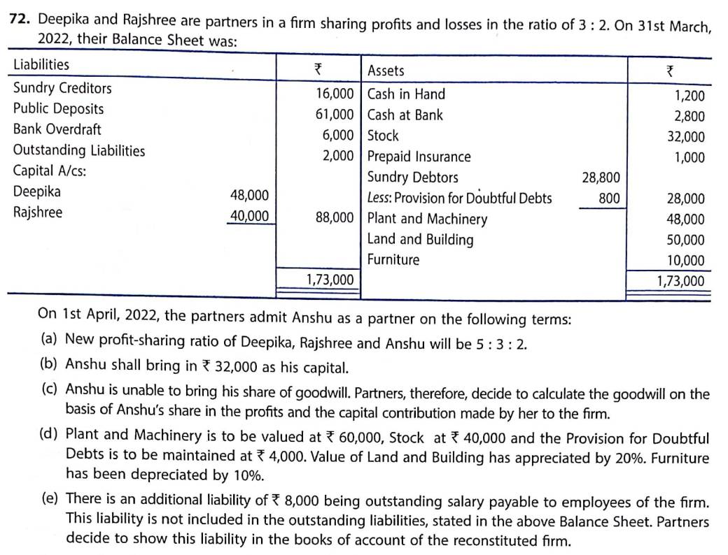 Solution of Question Number 72 Admission of Partner TS Grewal CBSE 2022-23 Edition