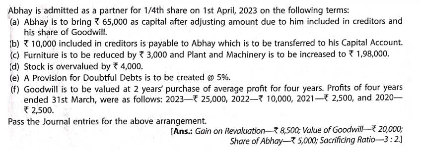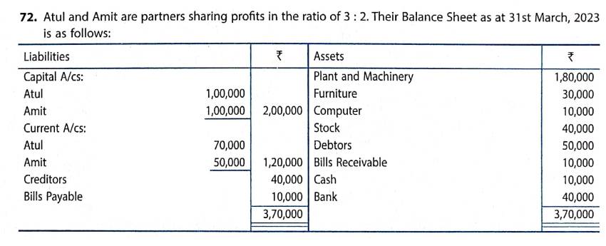 Solution of Question Number 72 Admission of Partner TS Grewal CBSE 2023-24 Edition