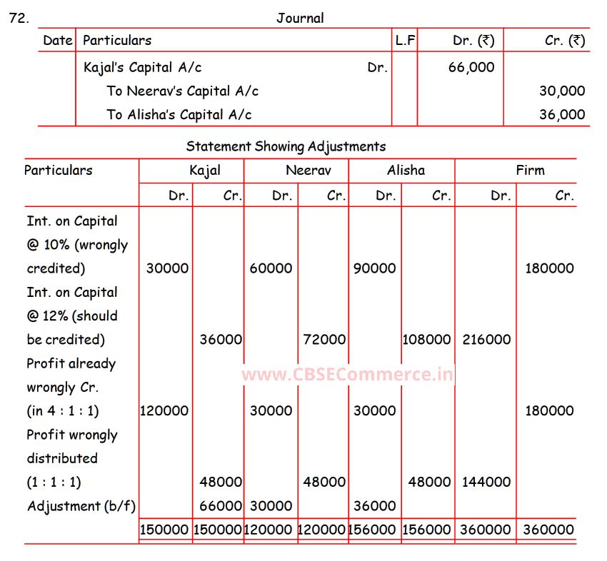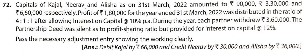 Solution of Question Number 72 of Accounting for Partnership Firms – Fundamentals TS Grewal CBSE 2022-23 Edition