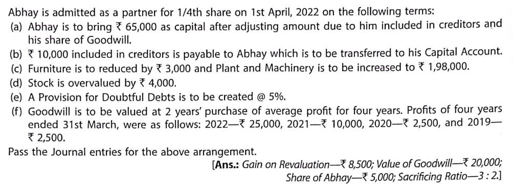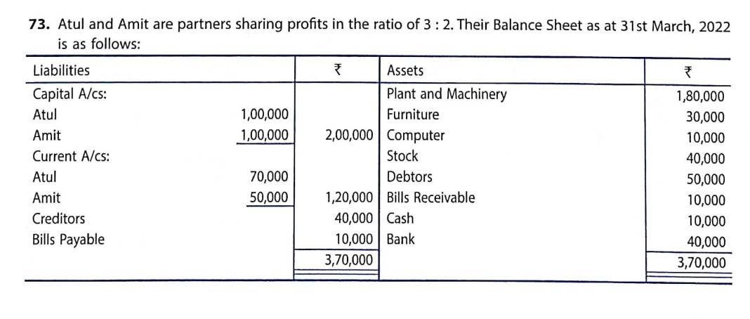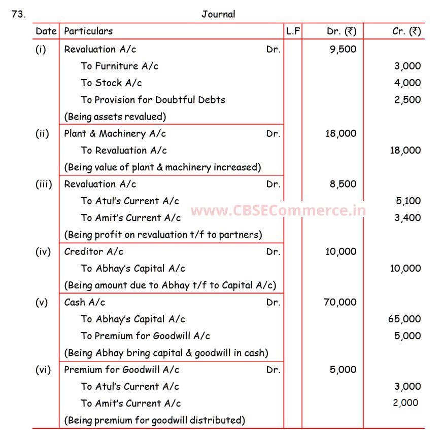 Solution of Question Number 73 Admission of Partner TS Grewal CBSE 2022-23 Edition