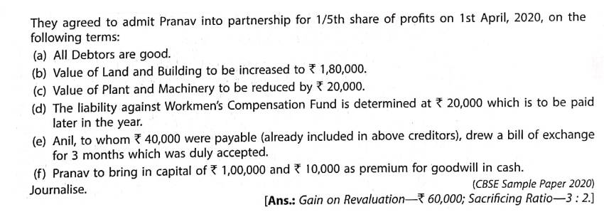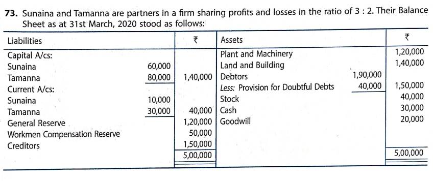 Solution of Question Number 73 Admission of Partner TS Grewal CBSE 2023-24 Edition