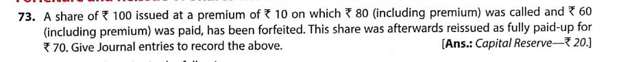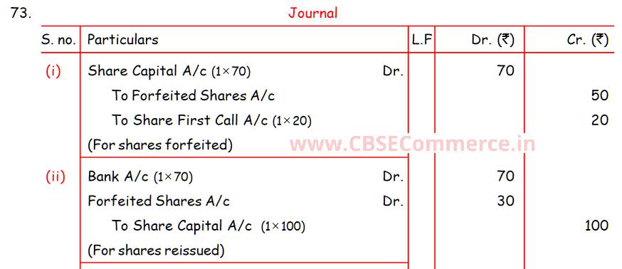 Solution of Question Number 73 Share Capital TS Grewal CBSE 2023-24 Edition