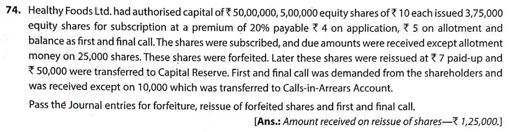 Solution of Question Number 74 Accounting for Share Capital TS Grewal CBSE 2022-23 Edition