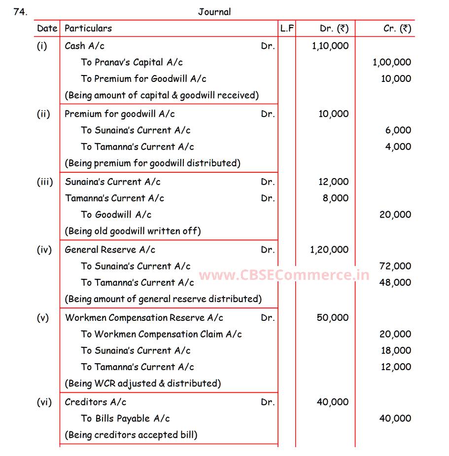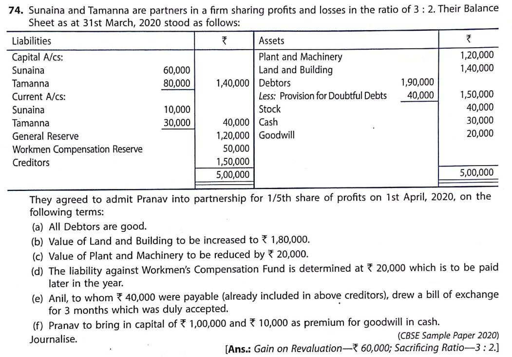 Solution of Question Number 74 Admission of Partner TS Grewal CBSE 2022-23 Edition