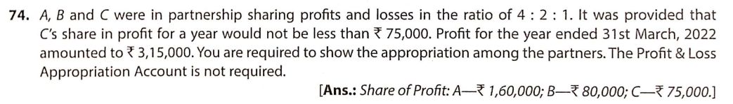 Solution of Question Number 74 of Accounting for Partnership Firms – Fundamentals TS Grewal CBSE 2022-23 Edition