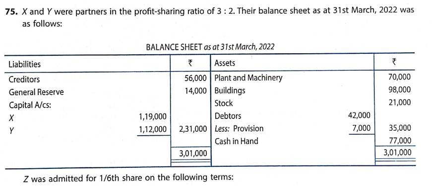 Solution of Q 75 Admission of Partner TS Grewal 2023-24 [CBSE]