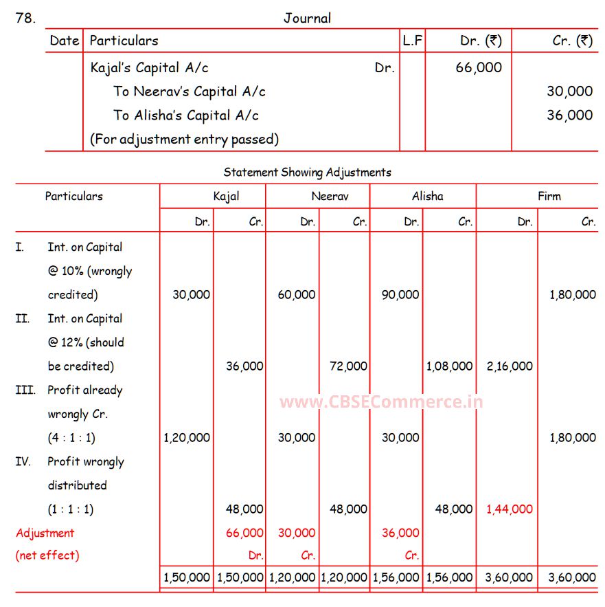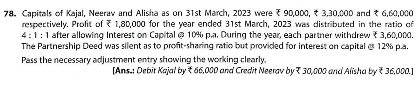 Solution of Question Number 78 of Accounting for Partnership Firms – Fundamentals TS Grewal CBSE 2023-24 Edition