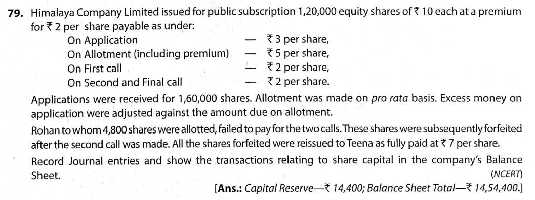 Solution of Q 79 Accounting for Share Capital TS Grewal 2022-23 [CBSE]