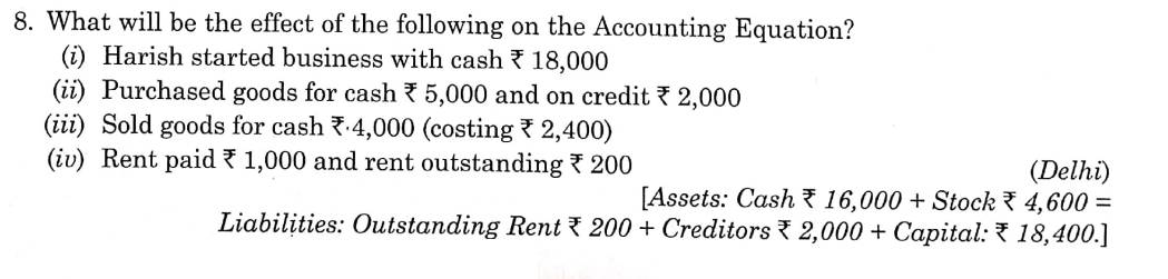 Here is the Solution of Q 8 Accounting Equation TS Grewal Class 11 Accountancy 2022-23 for the CBSE Board.