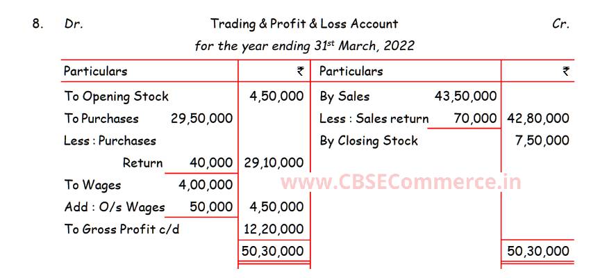 Solution of Question Number 8 Adjustments in Preparation of Financial Statements TS Grewal CBSE 2022-23 Edition