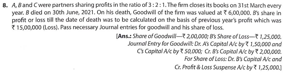 Solution of Question Number 8 Death of a Partner TS Grewal CBSE 2022-23 Edition