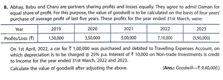 Solution of Question Number 8 Goodwill TS Grewal CBSE 2023-24 Edition