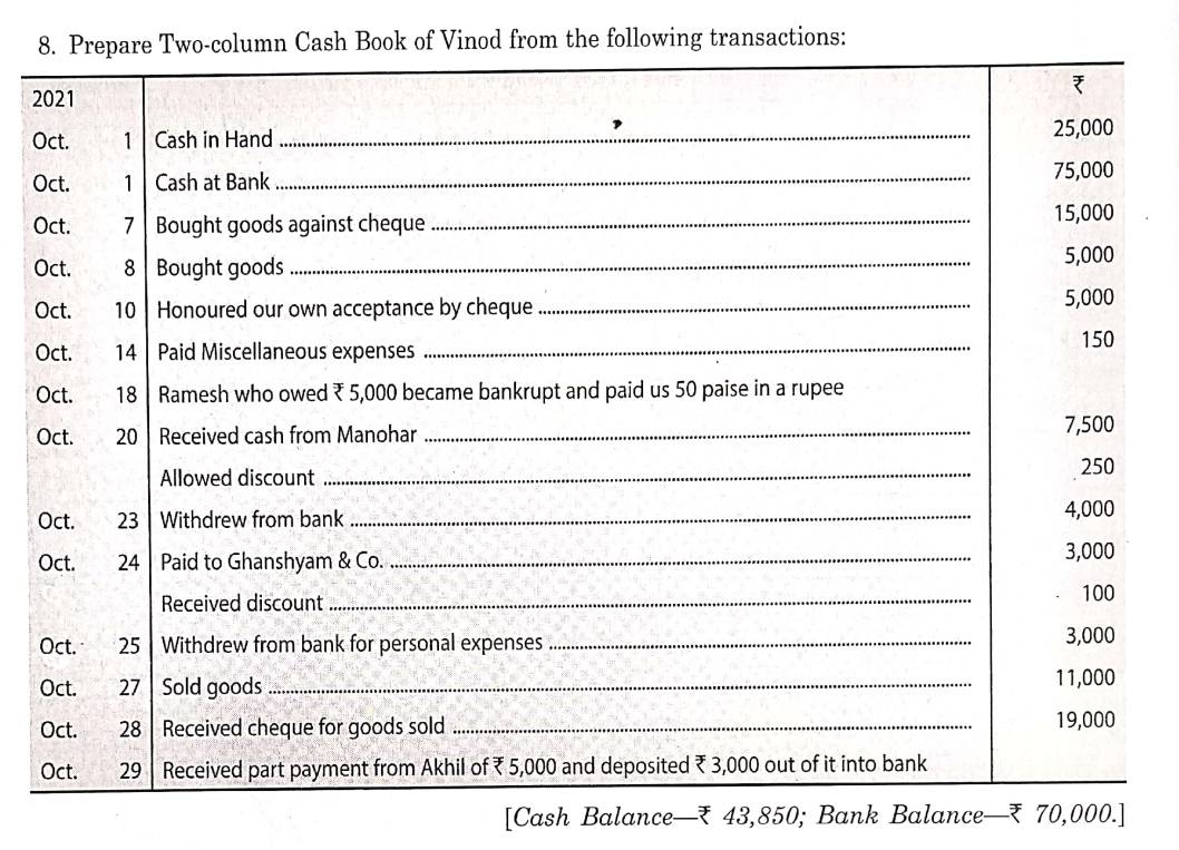Here is the Solution of Q 8 Special Purpose Books I Cash Book TS Grewal Class 11 Accountancy 2022-23 for the CBSE Board.