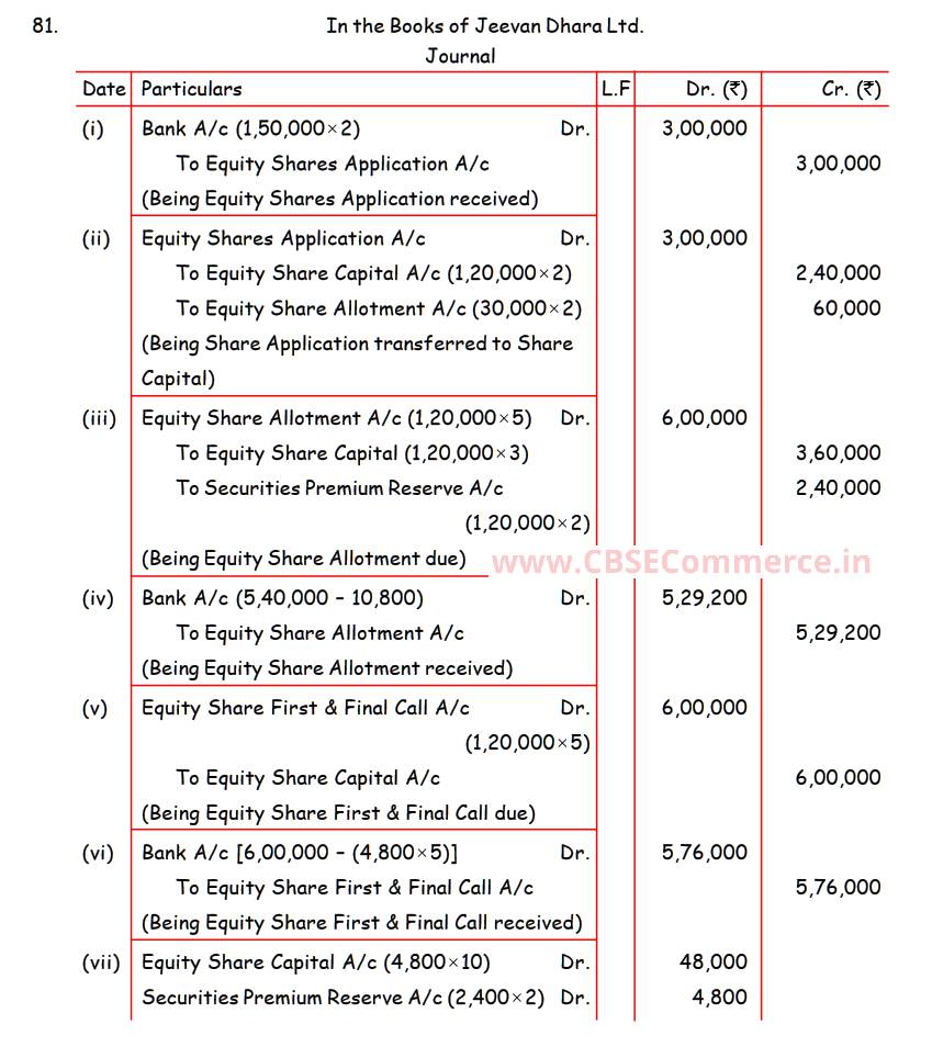 Solution of Question Number 81 Accounting for Share Capital TS Grewal CBSE 2022-23 Edition