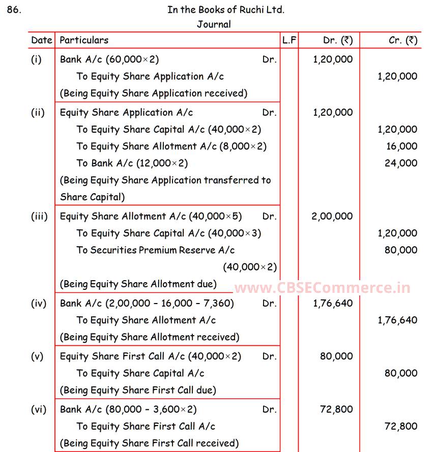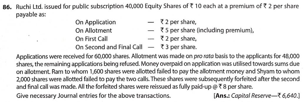 Solution of Question Number 86 Accounting for Share Capital TS Grewal CBSE 2022-23 Edition