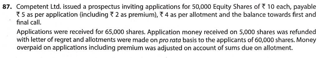 Solution of Question Number 87 Accounting for Share Capital TS Grewal CBSE 2022-23 Edition