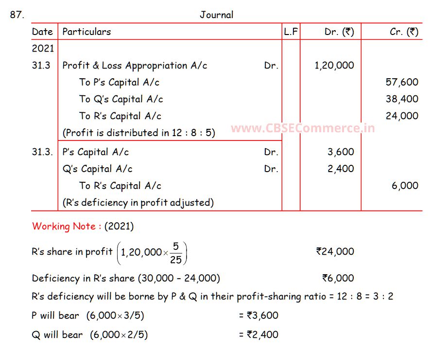 Solution of Question Number 87 of Accounting for Partnership Firms – Fundamentals TS Grewal CBSE 2023-24 Edition