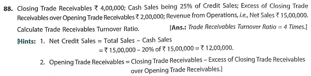 Solution of Question Number 88 Accounting Ratios TS Grewal CBSE 2022-23 Edition
