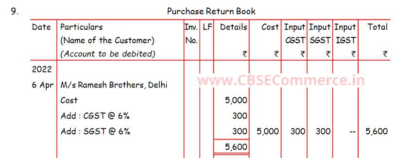 Solution of Question Number 9 Accounting for Goods and Services Tax (GST) TS Grewal CBSE 2022-23 Edition