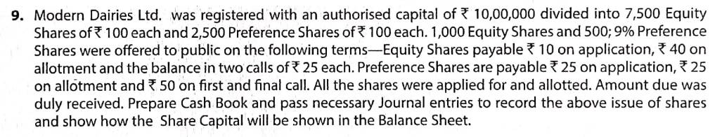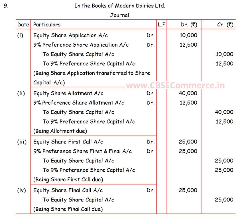 Solution of Question Number 9 Accounting for Share Capital TS Grewal CBSE 2022-23 Edition
