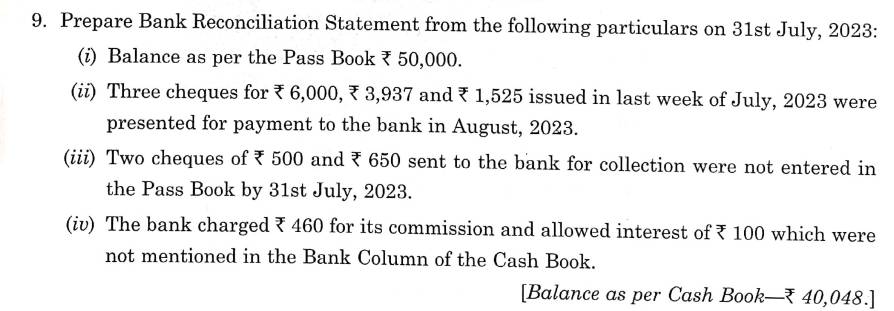 Here is the Solution of Q 9 Bank Reconciliation Statement TS Grewal Class 11 Accountancy 2023-24 for the CBSE Board.