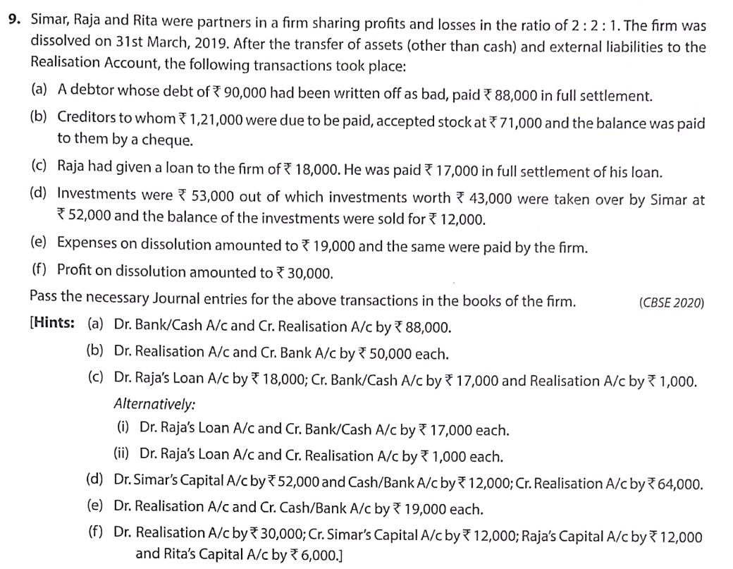 Solution of Question Number 9 Dissolution of a Partnership Firm TS Grewal CBSE 2022-23 Edition