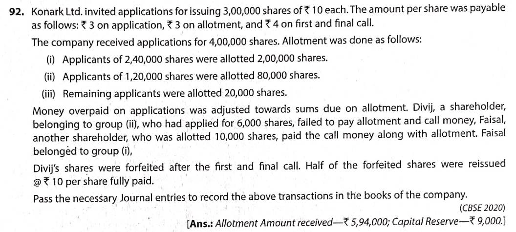Solution of Question Number 92 Accounting for Share Capital TS Grewal CBSE 2022-23 Edition