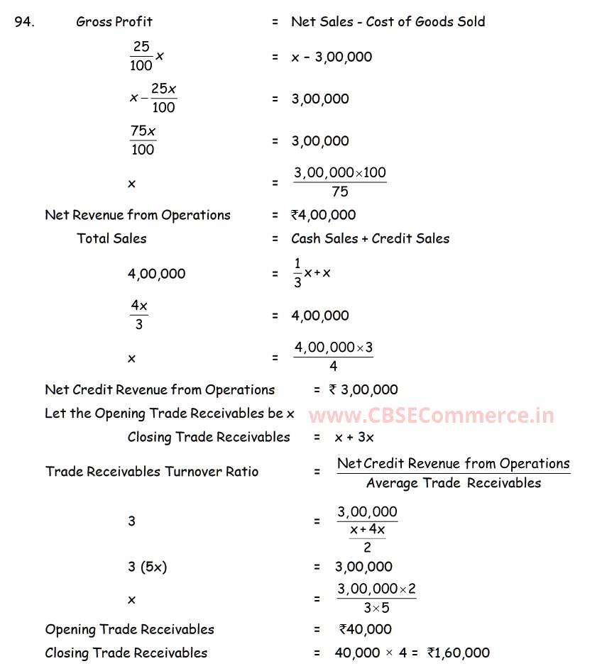 Solution of Question Number 94 Accounting Ratios TS Grewal CBSE 2022-23 Edition