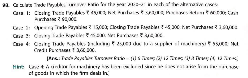 Solution of Question Number 98 Accounting Ratios TS Grewal CBSE 2022-23 Edition
