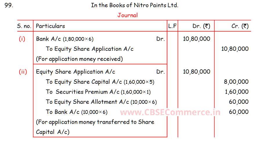 Solution of Question Number 99 Share Capital TS Grewal CBSE 2023-24 Edition